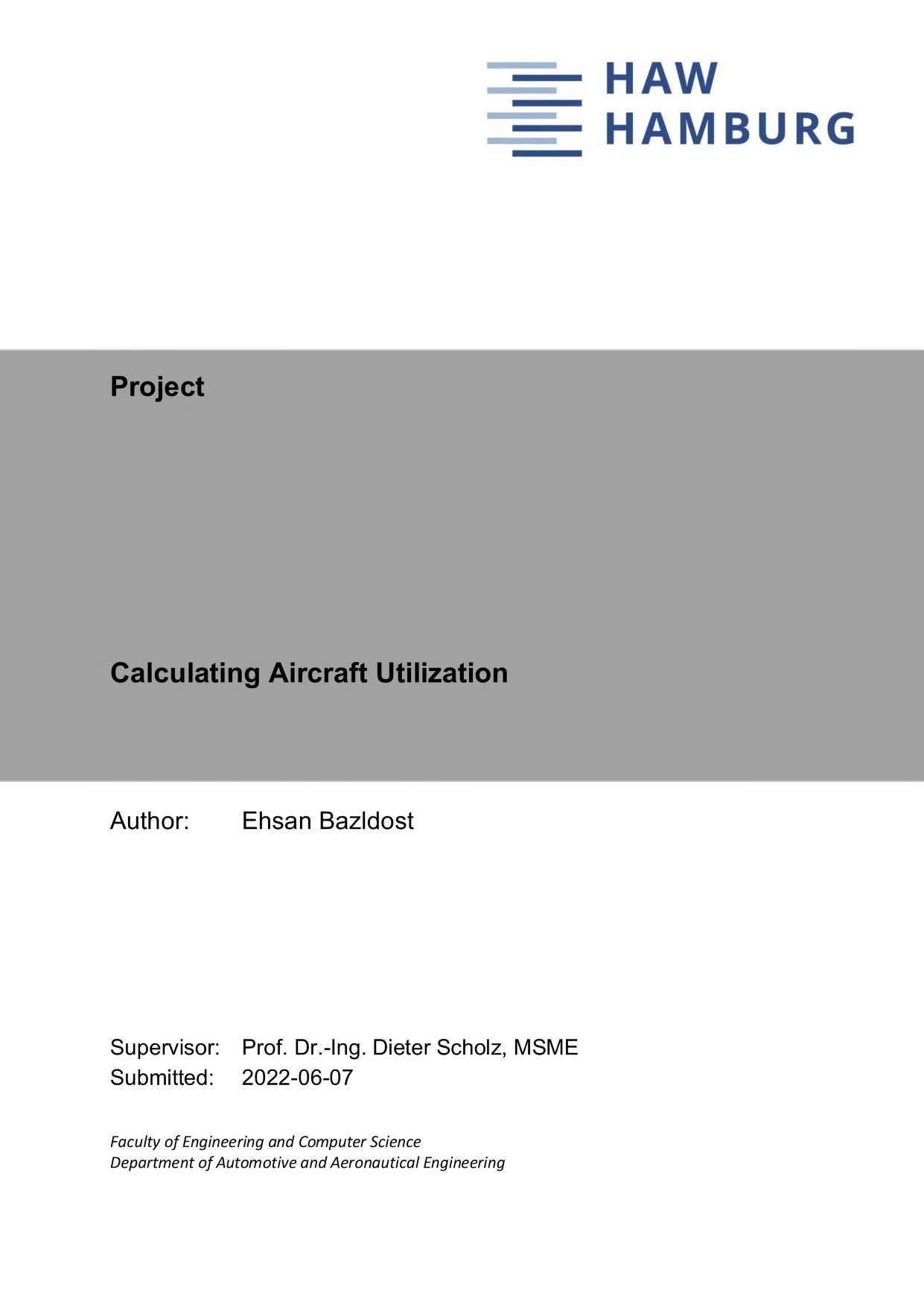 | Advisor / Examiner: | Dieter Scholz |